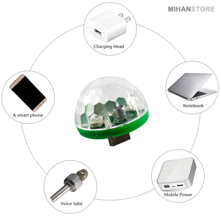 اگر شما به دنبال یک رقص نور برای متفاوت شدن مهمانی ها و جشن های خانگی هستید و میخواهید میهمانی خود رابه یک میهمانی مجلل و ماندنی تبدیل کنید٬ میتوانید از لامپ LED رقص نور موبایل اندروید استفاده کنید. این دستگاه جایگزین مناسبی برای دستگاههای رقص نور لیزری گران قیمت است٬ قیمت این دستگاه بسیار مناسب است و شما با یک وسیله کوچک ارزان یک میهمانی را در یک چشم به هم زدن٬ جذاب و با نشاط میکنید و شادی افراد را دوچندان میکنید. لامپ LED رقص نور موبایل اندروید با قابلیت اتصال به تلفن همراه(اندروید) و یا هر وسیله‌ی دیگری که خروجی usb دارد٬ مناسب برای مجالس مختلف مانند: مجالس عروسی٬ جشن تولد٬ سالگرد ازدواج و حتی مناسب برای دکوراسیون و اتاق خواب کودک است. لامپ LED رقص نور موبایل اندروید یک محصول خارق العاده و جذاب است٬ این محصول قابلیت اتصال به OTG جهت اتصال به تلفن همراه است. نور پردازی این دستگاه جلوه های بصری خاصی را بوجود می آورد٬ که عکس های مراسم را نیز زیباتر میکند. لامپ LED رقص نور موبایل اندروید با تغییر رنگ همزمان و بازی رنگها متناسب با ریتم موسیقی نور های رنگی و نشاط آوری را ایجاد میکند٬ که تاثیر زیادی بر حس و حال مراسم میگذارد.
