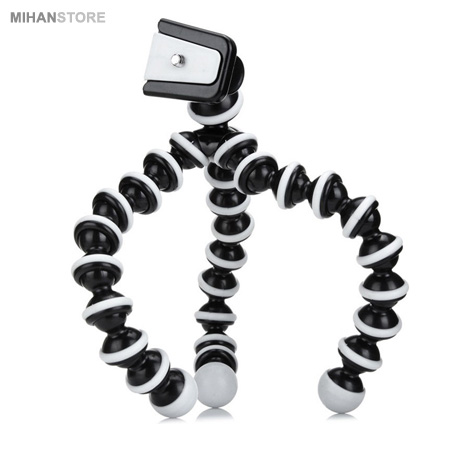 لرزش دست در هنگام عکاسی، یکی از عواملی است که روی کیفیت عکسها تاثیر نامطلوبی میگذارد. استفاده از سهپایه و تکپایه در عکاسی حرفهای و غیرحرفهای برای این است که از لرزشهای ناخواسته جلوگیری شود. سه پایه انعطاف پذیر گوریلا سایز متوسط 130 گرم وزن دارد و حداکثر ارتفاع آن 25 سانتیمتر است. حمل آن راحت است و درون کیف و کولههای شخصی یا لپتاپ جای میگیرد. پایههای آن از گویهایی تشکیل شده است که به کمک مفصلهایی انعطافپذیر در کنار هم قرارگرفتهاند. این مفصلها امکان تغییر زاویه و خم و راست شدن را به هرکدام از پایهها میدهند؛ در نتیجه میتوان آنها را به فرم دلخواه درآورد، از جایی آویز کرده یا به دور جسمی دیگر متصل کرد. این پایهی انعطافپذیر کوچک با پایههای ضد لغزشش، امکان ثابت نگهداشتن گوشی را روی هر سطح ناهمواری فراهم میکند.