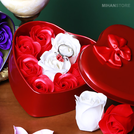 - محتویات داخل جعبه: انگشتر و گل های رز عطری