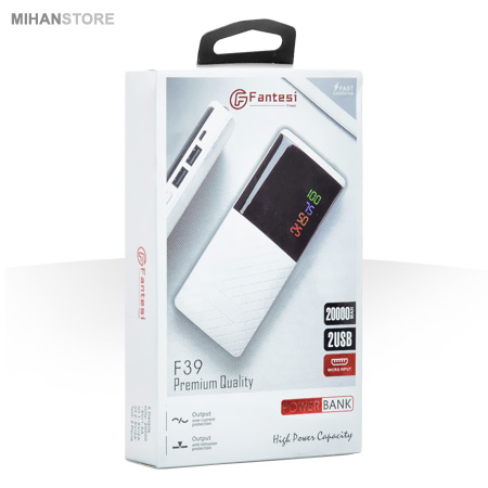 پاوربانک فانتسی 4000 میلی آمپر با ظرفیت اسمی 20000 میلی‌آمپرساعت محصول برند «Fantesi» است. این محصول با دو درگاه خروجی امکان شارژ هم‌زمان دستگاه‌هایتان را به شما می‌دهد. باتری این شارژر از نوع لیتیومی است و ولتاژ ورودی و خروجی این شارژر همراه 5 ولت است. بنابراین اگر دستگاه‌های 5 ولتی مانند گوشی، تبلت یا دوربین دیجیتال یا پخش‌کننده همراه دچار مشکل کمبود شارژ شد و به برق شهری یا خودرو دسترسی نداشتید، این پاور بانک مشکل شما را حل می‌کند. از روی نمایشگر دقیق درصد، می‌توان میزان شارژ باقی‌مانده را فهمید و یک چراغ LED بزرگ روی آن وجود دارد. این چراغ هم مانند چراغ‌قوه عمل می‌کند هم می‌تواند حالت چشمک زن داشته باشد. بدنه‌ی آن از پلی کربنات و پلاستیک ABS ساخته‌شده است و جای خط و خش به‌آسانی روی آن نمی‌افتد.