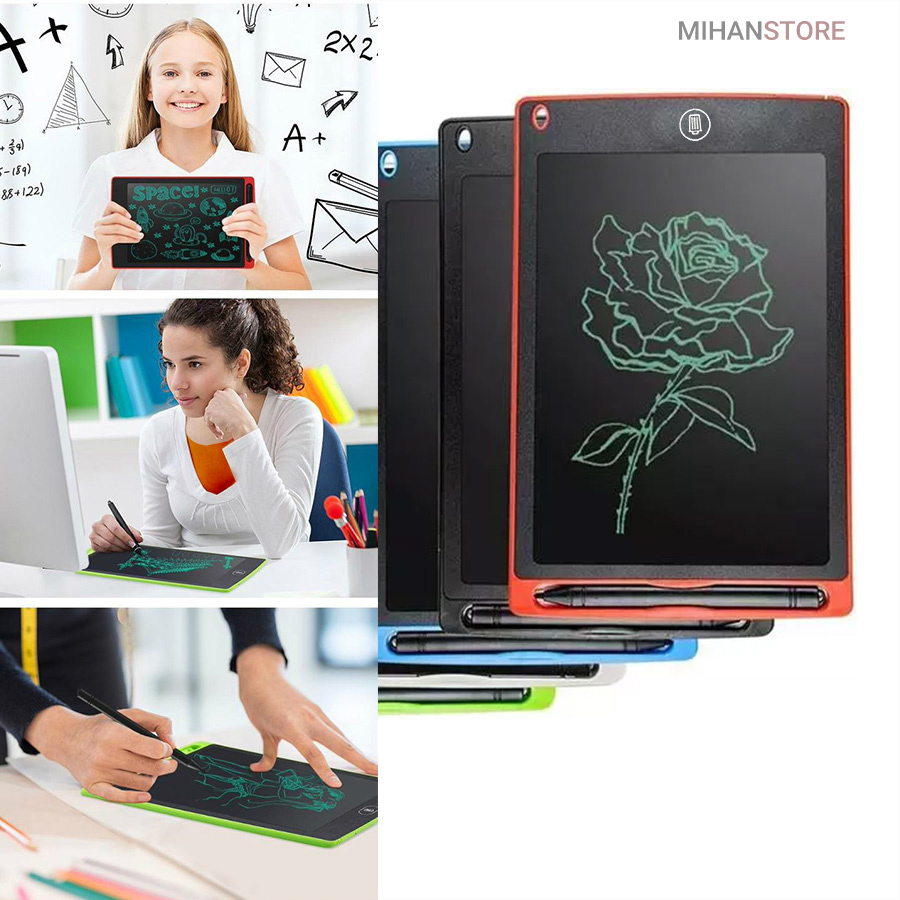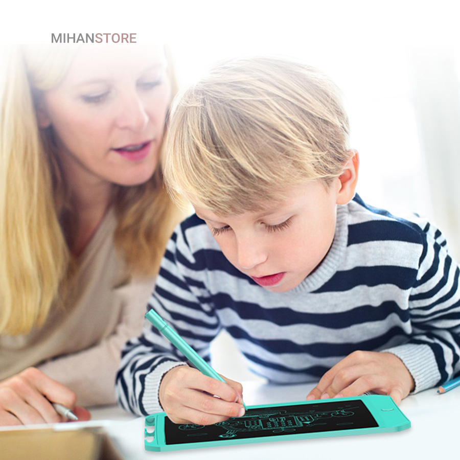 این تبلت جادویی بسیار مناسب نقاشی است و امکانات بسیار مناسب و کیفیت بالایی دارد همچنین بسیار نازک و سبک می باشد و کیفیت بسیار عالی و رنگ های متنوع نیز از دیگر ویژگی های آن می باشد. این وسیله جدیدترین و بهترین تبلت برای آموزش نقاشی و نوشتن حروف فارسی و انگلیسی به کودکان می باشد. کودکان بیشتر از همه افراد نیاز به سرگرمی و گذراندن زمان درست و مناسب دارند. چه بهتر که سرگرمی ای را برای آنها انتخاب کنید که باعث تقویت مهارت هنری و حفظ تمرکز و آرامش کودکان بشود. به راحتی و با قلم خوش دست و مناسب میتوان انواع طرح های مختلف را به راحتی ترسیم کرد بدون نیاز به مداد و دفتر، بهترین انتخاب برای سرگرم کردن کودکتان در هر زمان و هرمکان، بیرون از منزل، درمهمانی ها و در منزل می باشد. دکمه حذف را فشار دهید تا محتوای نوشته پاک شود. تبلت نوشتن ال سی دی از فناوری نمایشگر کریستال مایع انعطاف پذیر استفاده می کند. صفحه نمایش هنگام نوشتن متن یا کشیدن تصاویر و گرافیک به فشار قلم حساس است. تبلت جادویی مدلی است که انقلاب نوشتن بدون کاغذ را آغاز کرد. به راحتی با فشار یک دکمه پاک می شود، همراه با باتری قابل تعویض. در نتیجه، تبلت بسیار نزدیک طراحی با قلم و کاغذ را تقلید می کند.
