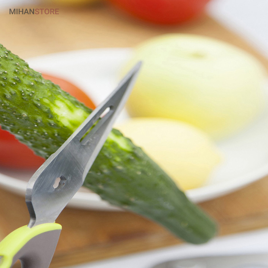 قیچی 8 کاره آشپزخانه یک قیچی منحصر به فرد است که با طراحی فوق العاده هوشمندانه ای که دارد می تواند چندین کار سنگین را با هم انجام دهد. در نگاه اول این محصول یک قیچی با تیغه های بسیار تیز که تیغه های تیز استیل ضدزنگ با لبه های دندانه دار برای جلوگیری از لغزش در هنگام برش میباشد میتوان از آن برای برش نان, میوه و سبزیجات و حتی مرغ و گوشت استفاده کرد اما پس از جدا کردن 2 تیغه ی این محصول از یکدیگر از کارایی بسیار بالای آن شگفت زده خواهید شد.اولین کاربرد هریک از تیغه ها استفاده به عنوان چاقویی بسیار تیز و کاربردی میباشد. در انتهای یکی از دسته های این قیچی قطعه ای فلزی قرار داده شده که میتوان از آن به عنوان درب باز کن , پیچ گوشتی 2 سو , لگه گیر سیب زمینی و حتی برای ایجاد سوراخ بر روی پوسته ی آهکی تخم مرغ استفاده کرد. از دیگر کاربردهای این قیچی میتوان به وجود پوست کن تیز بر روی یکی از تیغه ها اشاره کرد. ازویژگی های بسیار کاربردی این محصول تبدیل شدن یکی از تیغه ها به فلس گیر ماهی است که با چندحرکت به راحتی میتوان این کار را انجام داد.اما مهم ترین ویژگی این محصول که سبب تمایز آن با کالاهای مشابه میگردد خاصیت مگنتی این قیچی میباشد که به واسطه ی آن میتوانید قیچی را بر روی سطوح مختلف مانند یخچال نصب کرده و به این ترتیب قیچی بدون خطر برای فرزندانتان در دسترس شما باشد.