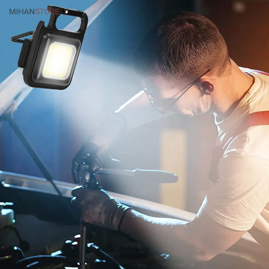 وقتی زمان شارژ  مجدد فرا می رسد، کافی است آن را به هر منبع تغذیه USB وصل کنید. این چراغ  قوه شارژی USB توسط یک باتری داخلی قابل شارژ با ظرفیت 500 میلی آمپر  ساعت، کابل شارژ تایپ C به USB تغذیه می شود. معمولاً حدود 2 ساعت طول  می کشد تا کاملاً شارژ شود. پایه آهنربایی  قوی و دسته قابل چرخش به شما امکان می دهد در حین کار دستان خود را رها  کنید. طراحی آهنربا به لامپ اجازه می دهد تا به هر فلزی متصل شود و دسته  قابل تاشو 180 درجه اجازه می دهد تا لامپ در زوایای مختلف قرار گیرد یا در  مکان های خاصی آویزان شود.این چراغ قوه  جاکلیدی می تواند نورهایی با حداکثر 800 لومن ساطع کند. این یک نور روشن با  زاویه گسترده ارائه می دهد. LED فنی بزرگ COB اجازه می دهد تا از این چراغ  به عنوان چراغ کار کوچک و چراغ اضطراری استفاده شود. چراغ قوه قابل حمل دارای کارابینی است که به راحتی به حلقه کلید یا کیف وصل می شود و در  برابر آب و ضربه مقاوم است. از طرف دیگر، بطری بازکن خوبی است. شما می  توانید از آن در سناریوهای مختلفی مانند کمپینگ، پیاده روی سگ، جستجوی  چیزها، تعمیر استفاده کنید.
