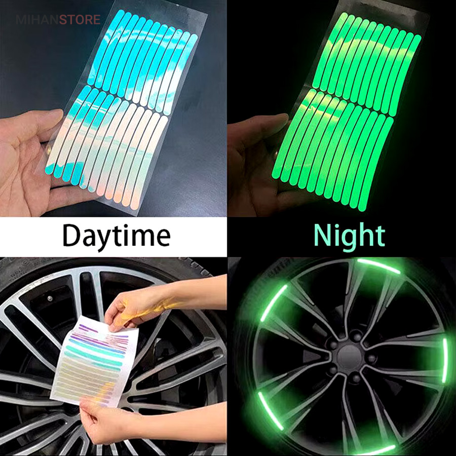 این برچسب ها رو روی رینگ و محیط تایر و لاستیک دوچرخه و یا ماشین میتونید بچسبونید ، در شب و تاریکی اثر درخشندگی شون علاوه بر زیبایی باعث هشدار و امنیت بالای شما هم میشه. مدل شب تاب در تاریکی با بازتاب نوری که قبلا جذب کرده در تاریکی مطلق هم از خودش نور ساطع می کنه.