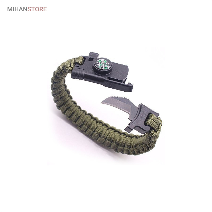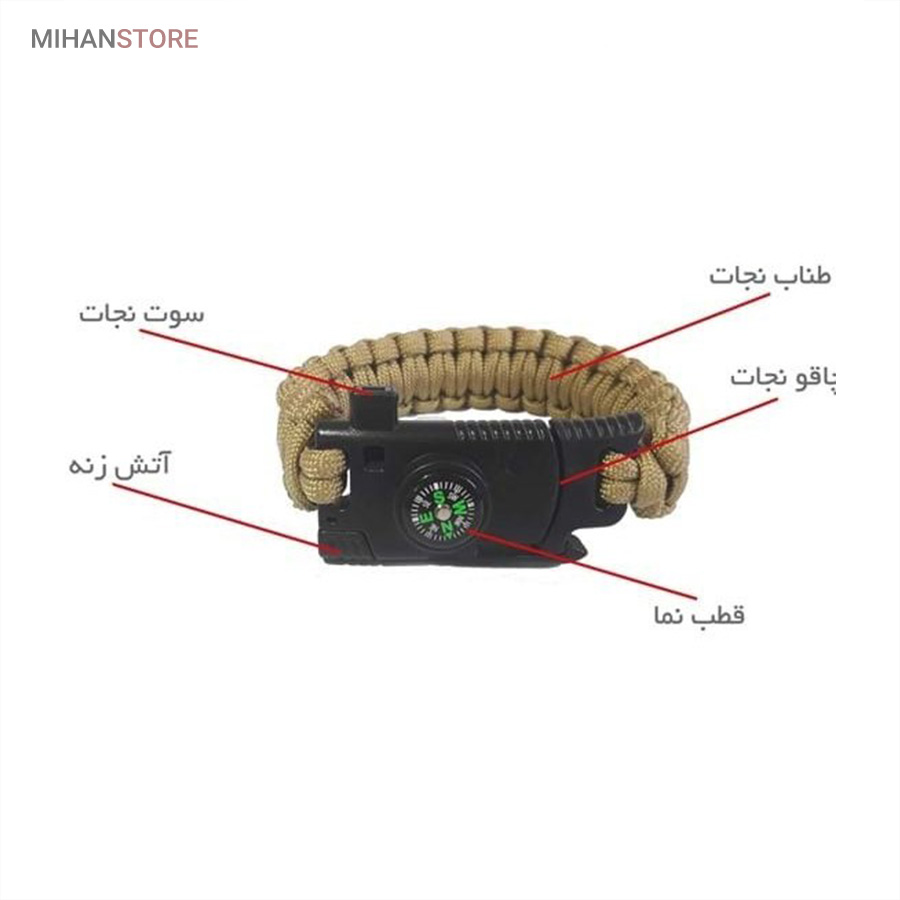 دستبند پاراکورد و نجات دارای وسایل ضروری برای بقا در طبیعت است، به وسیلۀ این دستبند می‌‌توانید به راحتی آتش روشن کنید، از ارتفاع پایین بیایید، مسیریابی کنید، ماهیگیری انجام دهید و… اگر به شکل دستبند پاراکورد و نجات نگاه کرده باشید متوجه می‌‌شوید که مانند یک طناب است، جالب است بدانید که طناب پاراکورد ساخته شده برای چتربازی هم مورد استفاده قرار می‌‌گیرد و از مقاومت و استحکام بسیار بالایی برخوردار است. مقاومت بالای این طناب به میزانی است که می‌‌توانید یک وزنه‌‌ی 200 کیلوگرمی را بدون نگرانی به آن متصل کنید، از طناب پاراکورد علاوه بر چتربازی می‌‌توان در ماهیگیری، بند آوردن خونریزی، درست کردن آتش،  فرود آمدن از ارتفاع، طناب نگهدارنده‌‌‌‌ی چادر، درست کردن پناهگاه و… نیز استفاده کرد.دستبند پاراکورد و نجات معمولا از 7 تا 9 رشته طناب با طولی 3 تا 4 متری تشکیل شده است که می‌‌توان برای مصارف مختلف در سفر از آن استفاده کرد. دارای ضروریات مربوط به یک سفر بوده و همچنین می‌‌تواند به دلیل زیبایی آن نیز مورد استفاده قرار گیرد، این وسیلۀ کاربردی می‌‌تواند کادوی بسیار مناسبی برای افرادی باشد که بسیار در طبیعت سفر می‌‌کنند. قطب نما، سوت اضطراری این سوت سطح سر و صدا را می‌تواند تا 110 db ایجاد کند و به امدادگران سیگنال دهد و چاقو که برای برش طناب و مواقع ضروری مورد استفاده قرار می‌گیرد و پشت چاقو در قسمت بالا هم دندانه‌هایی قرار دارد.