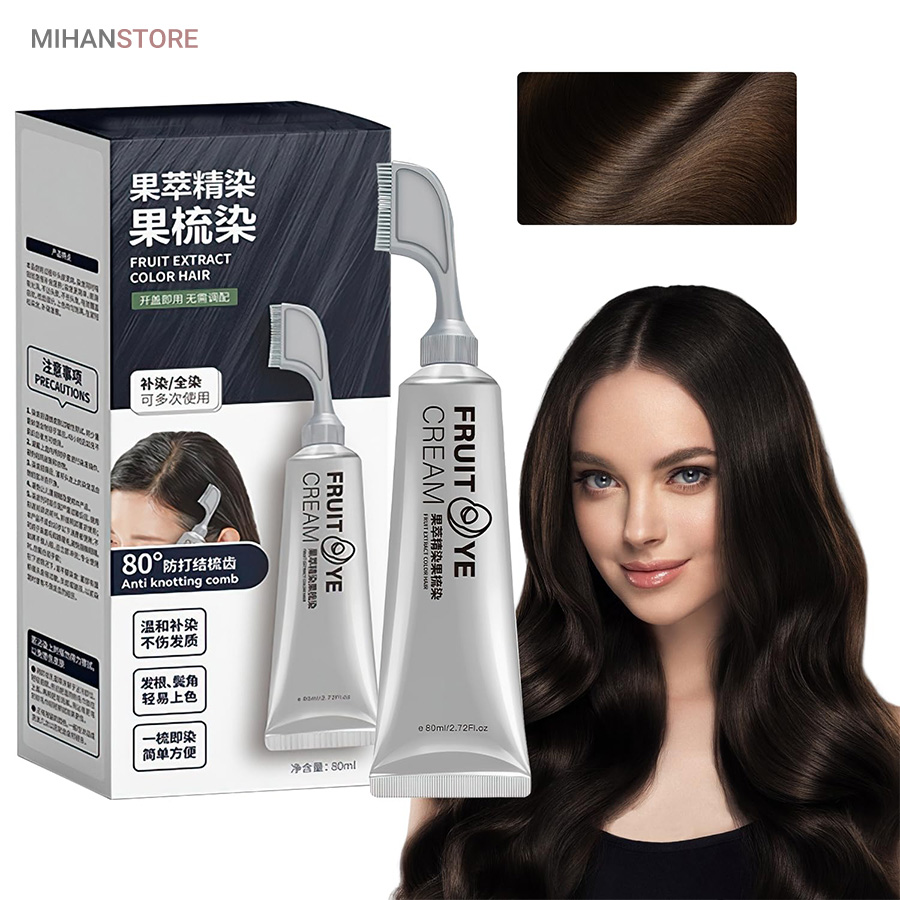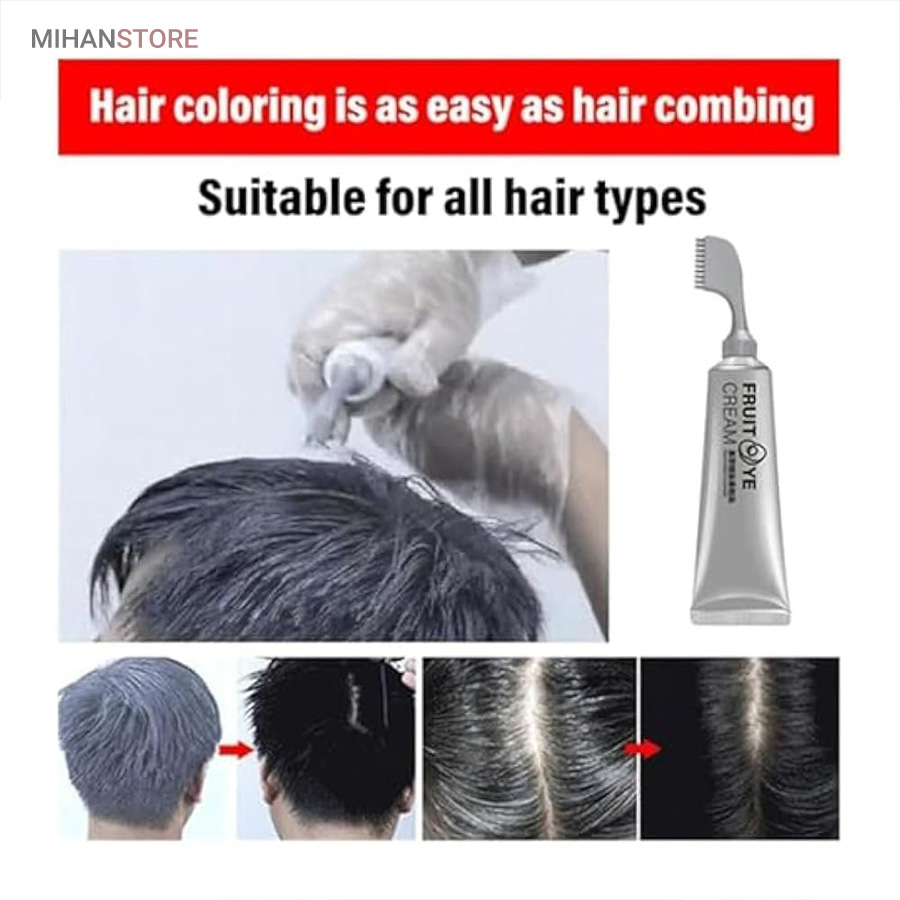 رنگ گیاهی رفع سفیدی مو (شانه دار) FRUIT HAIR پوشاننده مو های سفید و قابل استفاده برای آقایان و بانوان، این محصول ویتامینه مو و کاملا گیاهی می باشد و باعث ایجاد جلوه طبیعی مو خواهد شد و همچنین بعد از اتمام کل محصول تا حدود خیلی زیادی سفیدی موهای شما از بین خواهد رفت.