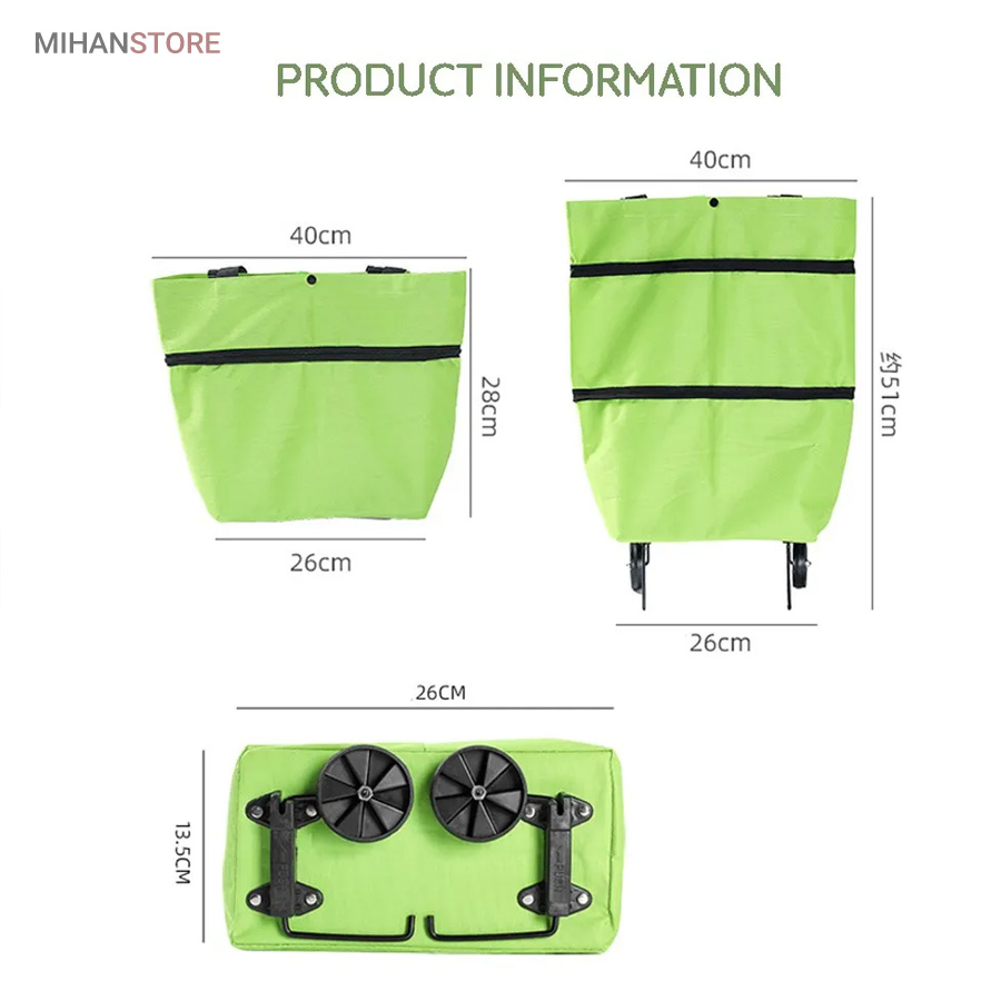 این کیف از جنس پارچه برزنتی ساخته شده و ضد آب، ضد پارگی، گرد و غبار و بادوام است که با طرح های رنگارنگ چاپ شده، شیک و مد روز است. چرخ های آن تاشو جهت حمل آسان می باشد، اندازه آن می تواند مانند یک کیف کوچک پس از تا کردن باشد. پارچه نایلونی با چگالی بالا باعث می شود ظرفیت باربری قوی داشته باشد. کیسه با ظرفیت زیاد می تواند بسیاری از چیزها را در خود جای دهد، مانند لباس، میوه، سبزیجات، کفش و غیره.