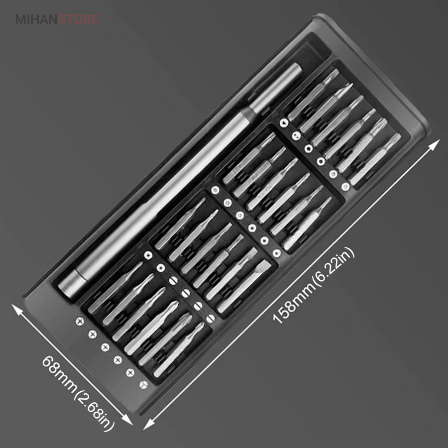مجموعه پیچ گوشتی 25 پارچه حرفه ای دارای موتور الکتریکی هستند که در داخل آن موجب چرخش بیت یا نوک مخصوص پیچ‌ها می‌شود. این نوک‌ها بسته به نیاز می‌توانند با انواع مختلف پیچ‌ها سازگاری داشته باشند، مانند پیچ‌های صلب، پیچ‌های مغناطیسی، پیچ‌های صنعتی و پیچ‌های میکرومتریک. پیچ گوشتی‌ها علاوه بر کاربردهای تعمیراتی و نصبی، برای تولیدات صنعتی انبوه هم بسیار کارآمد هستند. این ابزارها می‌توانند برنامه‌پذیر و تنظیم شونده باشند و باعث افزایش سرعت کار و صرفه‌جویی در زمان و انرژی شوند. این محصول مناسب کار با گوشی موبایل، عینک، وسایل کامپیوتری، ساعت، اسباب بازی، دوربین عکاسی و… میباشد.