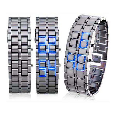 اين ساعت با تمامي ساعت هاي انالوگ و يا ديجيتال هاي قديمي فرق مي كند. ساعت سامورايي نسل جديدي از ساعتهاي مچي شيك و زيبا ميباشد كه به رهبري طرحهاي ژاپني LED دار به تازگي وارد بازار ساعت شده اند. اين ساعت كاملا شبيه به يك دستبند تمام استيل فوق العاده زيبا مي باشد كه با شيوهاي متفاوت زمان را به نمايش ميگذارد و ديگران را حيرت زده خواهد كرد.