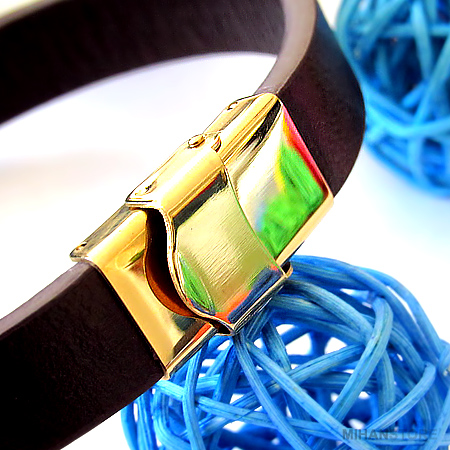 دستبند چرمی طرح ورساچه با دو رنگ قهوه‌ای و مشکی و پلاک نازک طلایی ورساچه  نمونه‌ای از زیورهای ساده و در عین حال پرطرفدار از جانب آقایان و خانوم ها است که با اکثر رنگ‌های لباس همخوانی داشته و در عین حال متفاوت دیده می‌شود. این دستبندها مناسب ترین هدیه برای جوانان شیک پوش است.